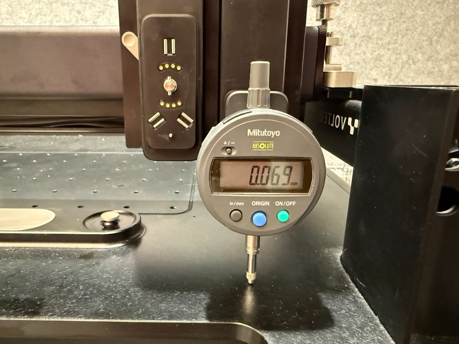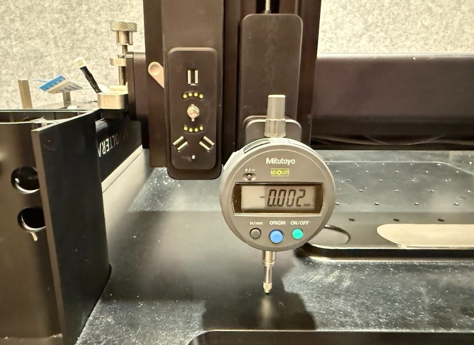 Now push NOVAs module hub back to the very left side of NOVA to confirm that the height is within 100µm (0.100mm) of the left side.