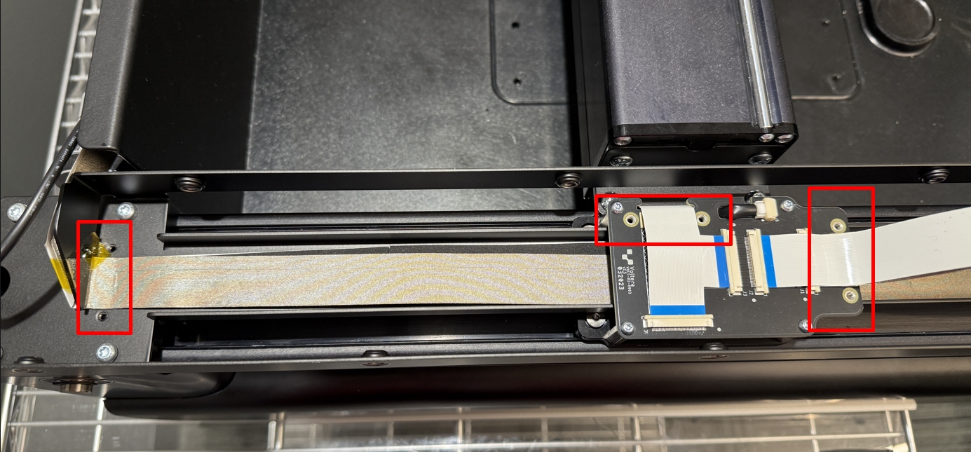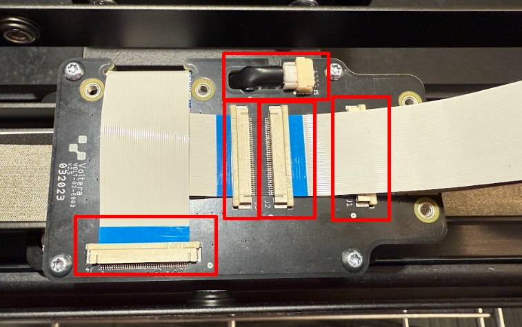 Connect the 4 ribbon cables and the black motor cable to the Y-carriage PCB.