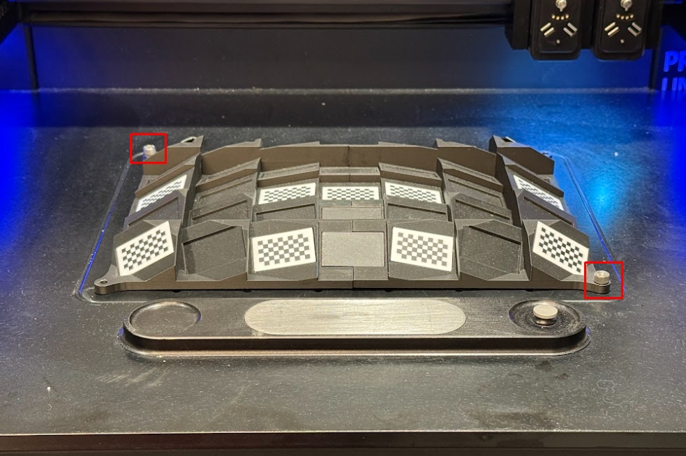 The calibration will take a series of pictures across the surface of the jig. It will then pause for a moment to make some calculations. It will then take one final picture in the center of the jig. Once complete it will home the gantry.