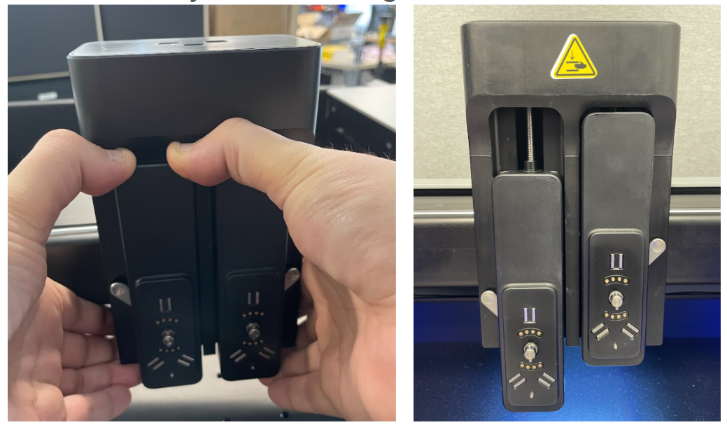 With NOVA powered down, push the problem port (Left (C) or Right (Z)) down as low as it can go by placing both thumbs on the top of the port and supporting the module hub from below with your other fingers.